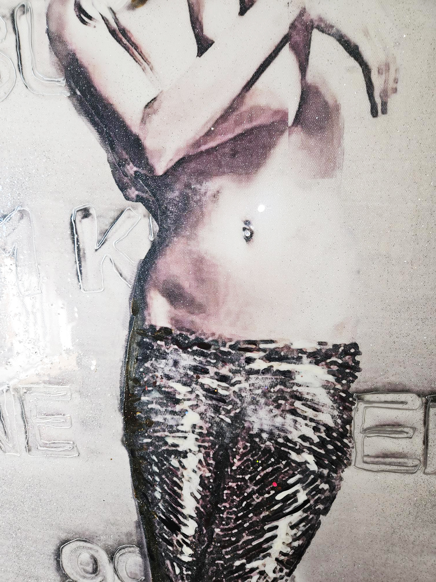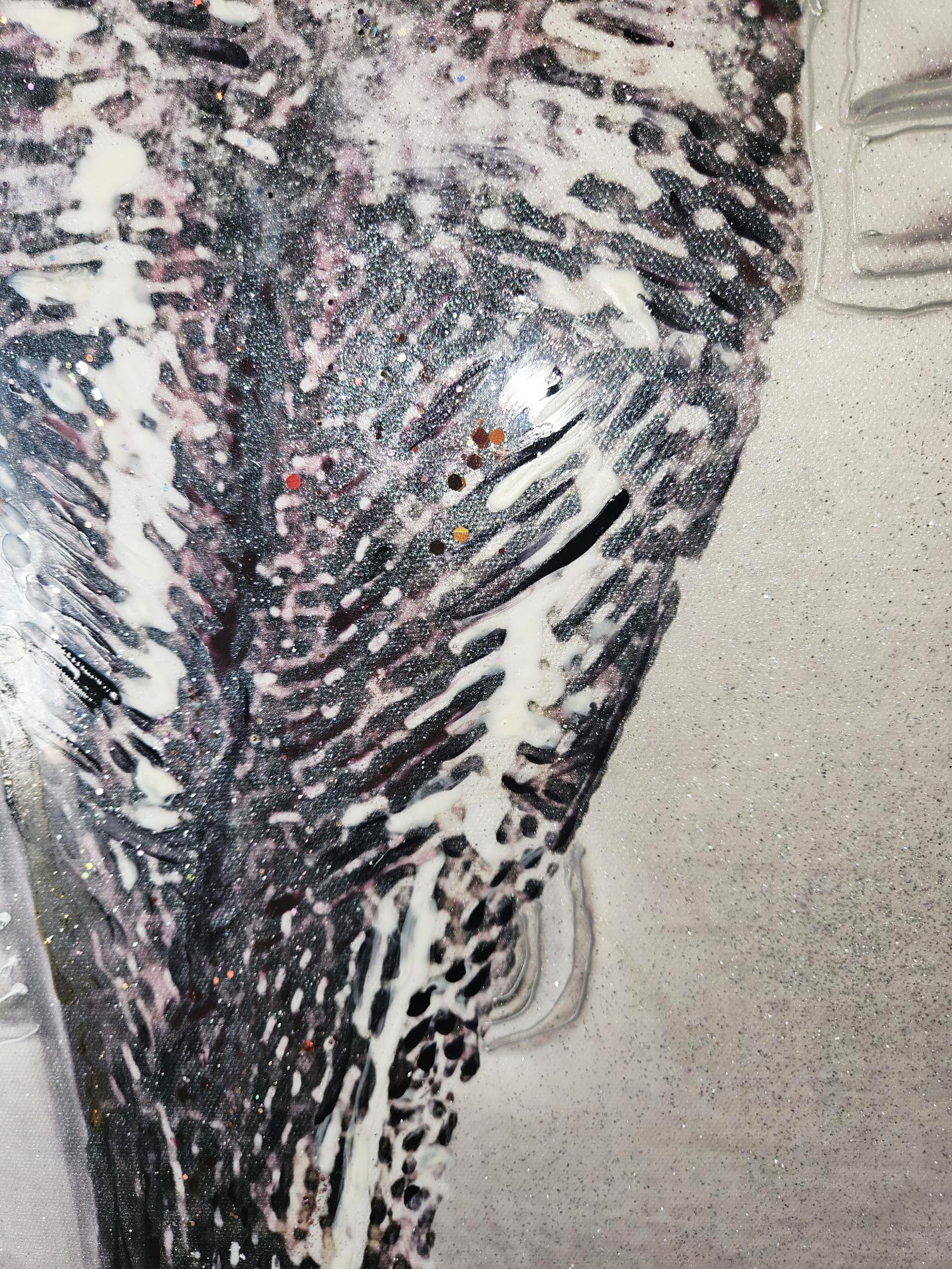Epaisseur 4 cm.Acrylique sur toile.Peinture 3D.Poudre de cristal.Finition glaçage résine.Résiste au temps.Anti UV et jaunissement.
