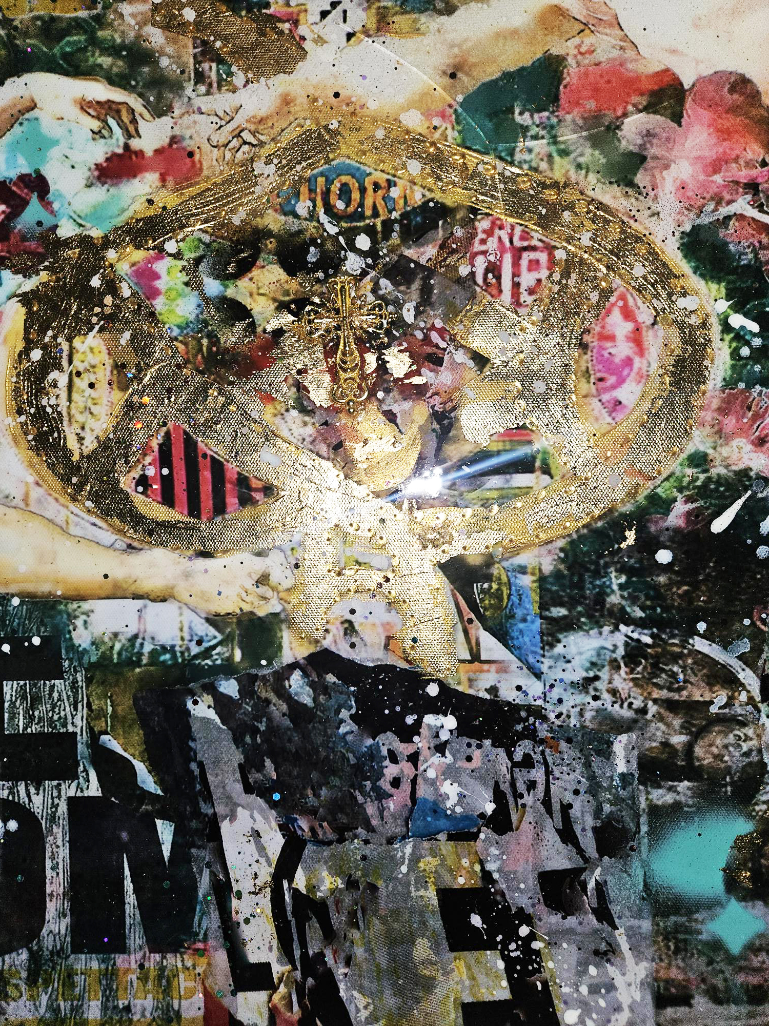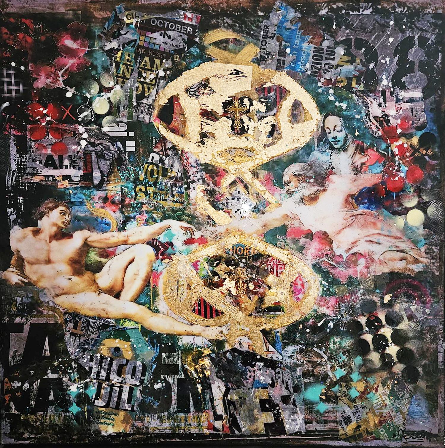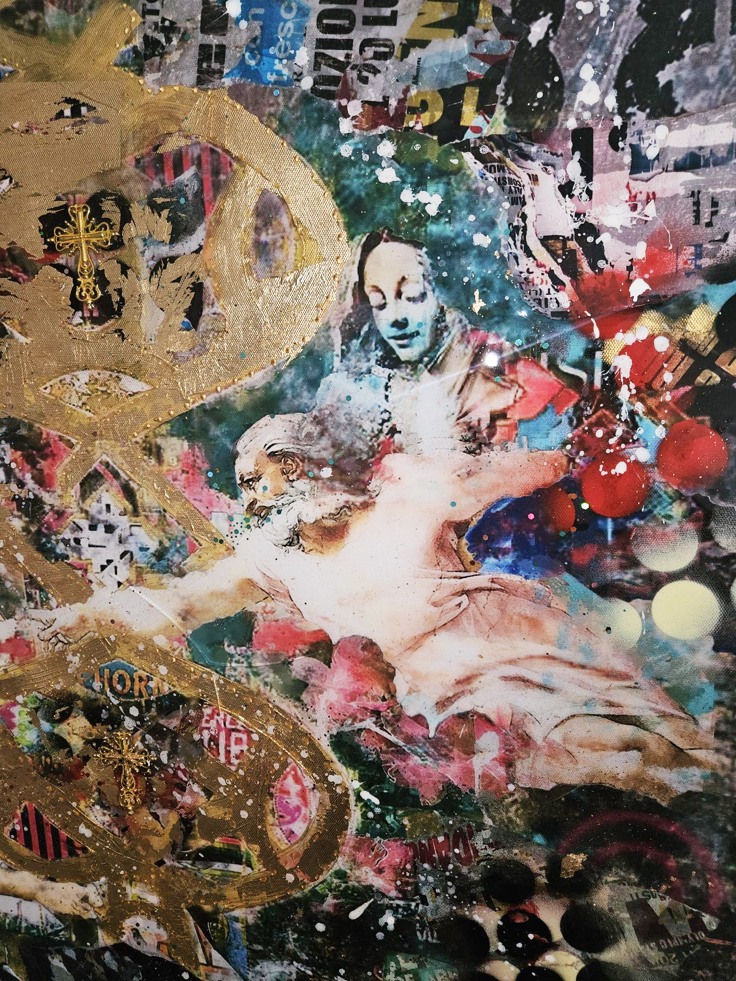 Epaisseur 4 cm.Acrylique sur toile.Peinture 3D.Poudre de cristal.Finition glaçage résine.Résiste au temps.Anti UV et jaunissement.